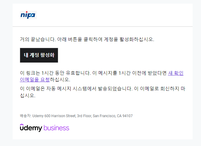 내 계정 활성화 버튼을 누르고 미리 가입해둔 유데미 계정으로 로그인 한다.
