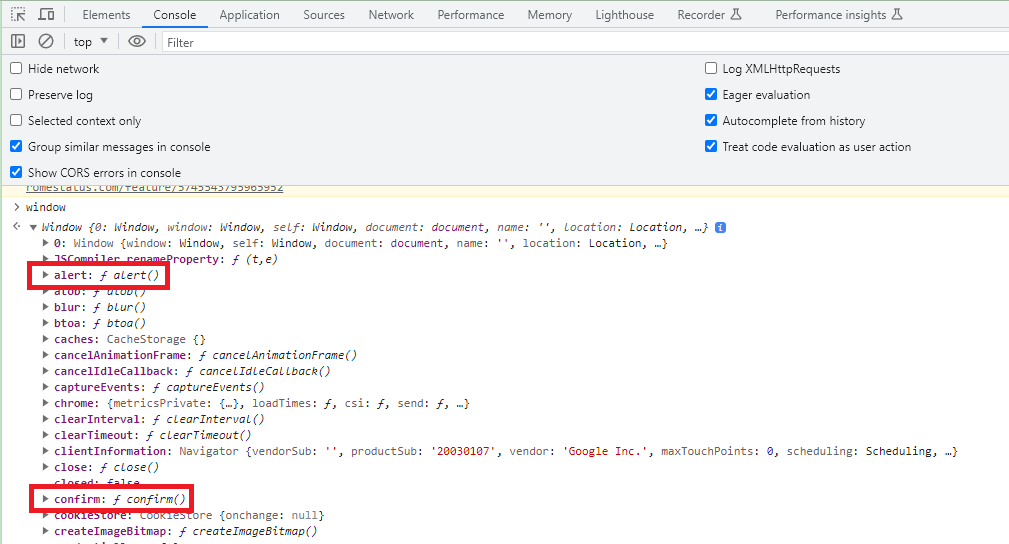 그래서 전역 객체인 window의 속성으로 제공되는 alert(), confirm() 등의 메소드는