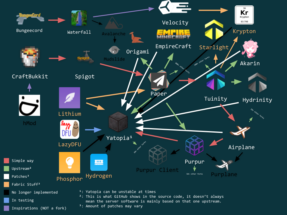 Bukkit API를 기반으로 만들어진 버킷들은 다음과 같이 다양하다.