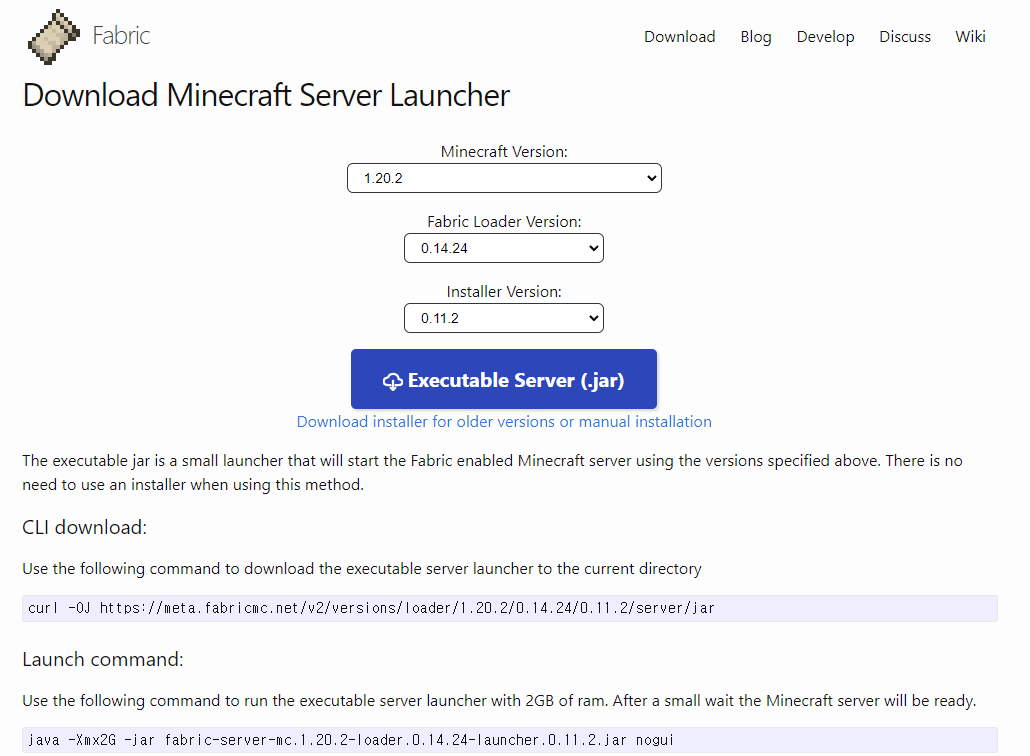 - 패브릭(fabric) - https://fabricmc.net/use/server/