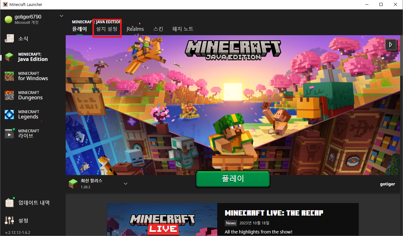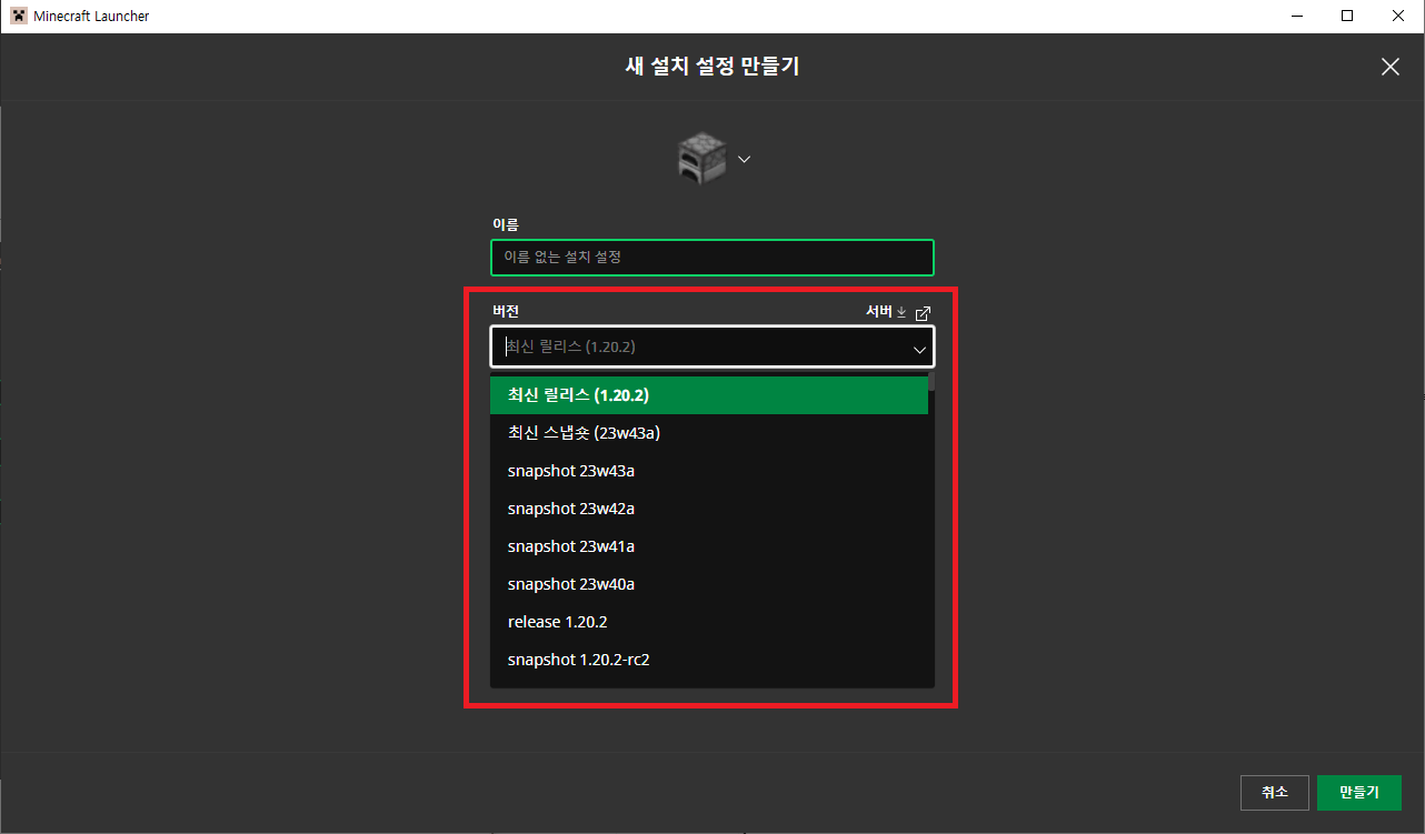 마인크래프트 런처에서 받는 방법