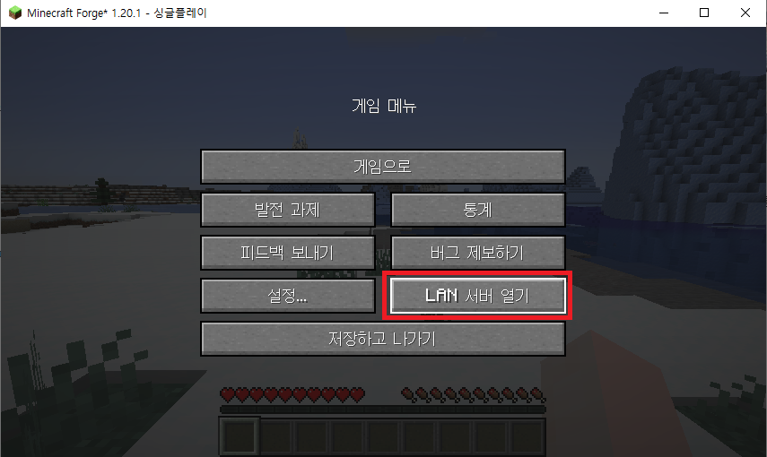 싱글플레이에서 게임설정에 들어가면 LAN 서버를 열 수 있다.