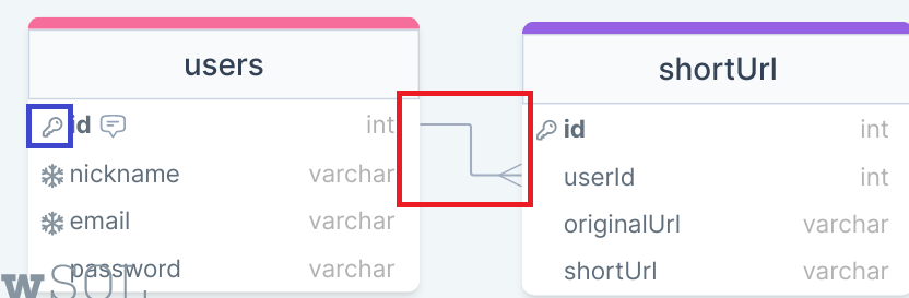 파란색 박스가 PK 이고 빨간색 박스는 FK 이다