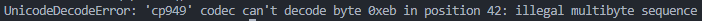 여기서 cp949로 인코딩 되어있어 해석할 수 없다고 나온다.