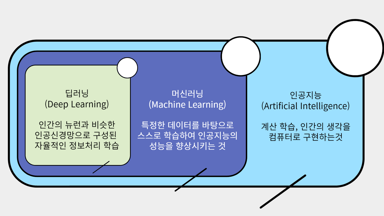 - 머신러닝을 이용한 학습 과정에는 인간이 개입하지만, 딥러닝을 이용한 학습 과정에서는 기계가 스스로 해답을 찾아 분류나 예측을 수행