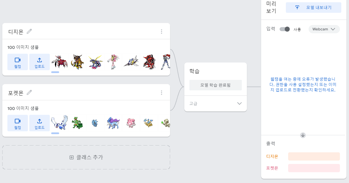 과제 : 본인들이 관심있는 이미지를 가지고 티처블 머신에서 예측모델을 생성한 후 테스트한 결과 영상을 예측모델 소스와 같이 문서로 작성하여 제출하시오.