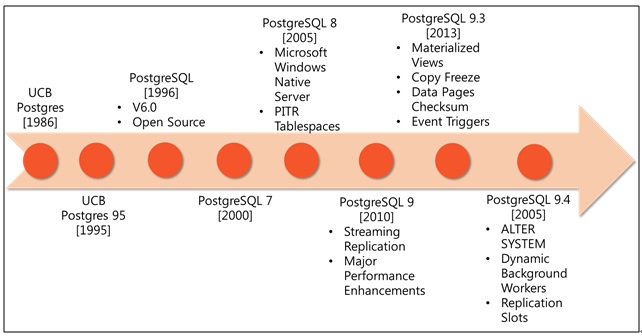 미국 캘리포니아에 있는 버클리 대학 컴퓨터 과학부에서 개발한 POSTGRES v4.2를 기반으로 개발됨