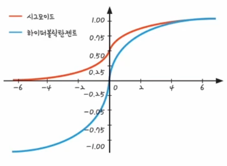 - 하지만 하이퍼볼릭탄젠트 함수는 0이 아닌 -1의 값을 출력하기 때문에 이 한계를 넘을 수 있다.