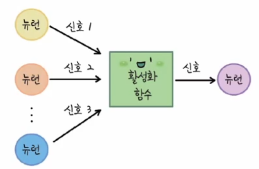 여러 뉴련에서 들어오는 신호 세기를 특정한 값으로 바꾸기 위해 활성화 함수를 사용한다.