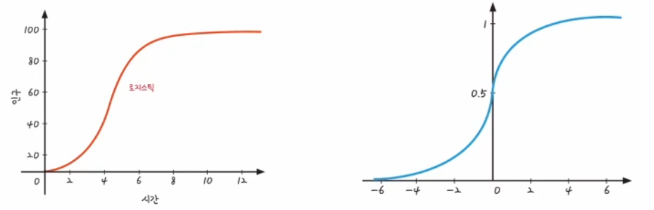 - 로지스틱 함수: 어떤 생물들이 어떤 식으로 증가하는지 설명하는 모델