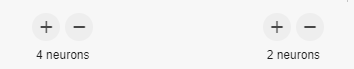 각 층에서 더하기, 빼기 버튼을 클릭하면 층의 뉴런의 수를 수정할 수 있다