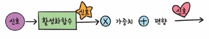 뉴런이 전달하는 신호는 가중치와 편향을 거쳐온다.
