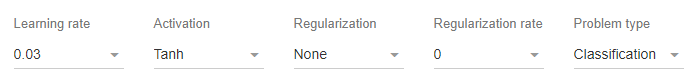 - Problem type: 텐서플로 플레이그라운드에서는 문제를 분류(Classification)와 회귀(Regression)로 나눕니다.