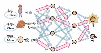 둘 중 어느 쪽으로 신호가 많이 가는지를 살펴본 후 신호가 많이 간 쪽 성별이라고 판단을 내림 - 인공 신경망 모델은 입력받은 데이터를 사용하여 추론한 결과를 보여준다