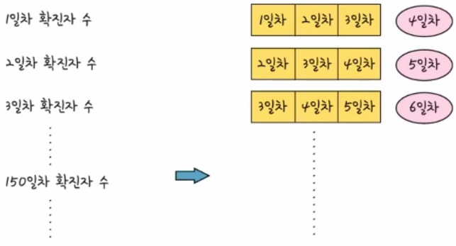 - 1, 2, 3일차의 확진자 수를 순환 신경망 모델에 넣으면 그다음 날짜의 확진자 수를 예측해서 반환한다