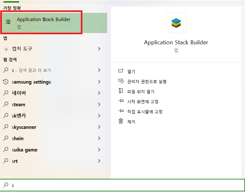 대충 스택 빌더(Stack Builder)로 추가 툴, 드라이버, 애플리케이션을 다운로드 할 수 있다.!! 라는 뜻
