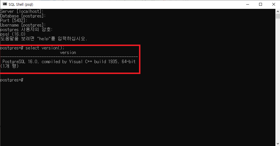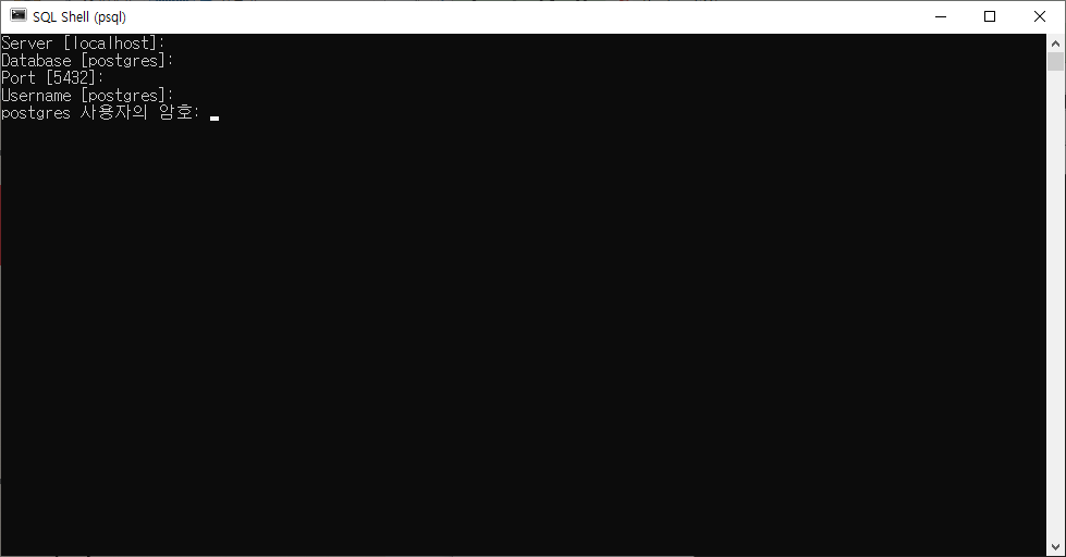 SQL를 검색하고 SQL Shell (psql) 를 실행