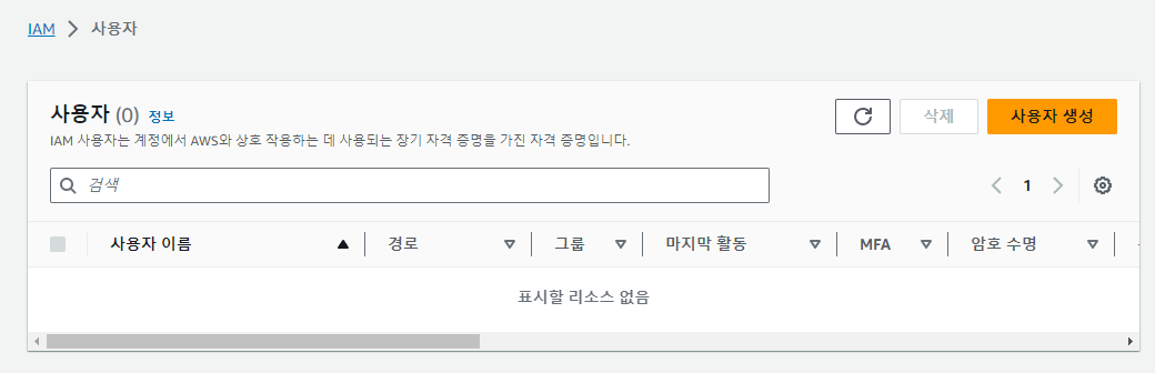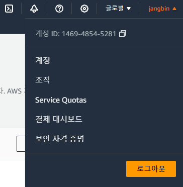 우측 이름 > 보안 자격 증명 > 액세스 관리 > 사용자 그룹에 가준다.