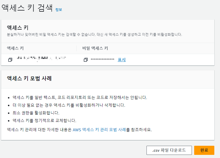 엑세스 키 및 시크릿 키 발급