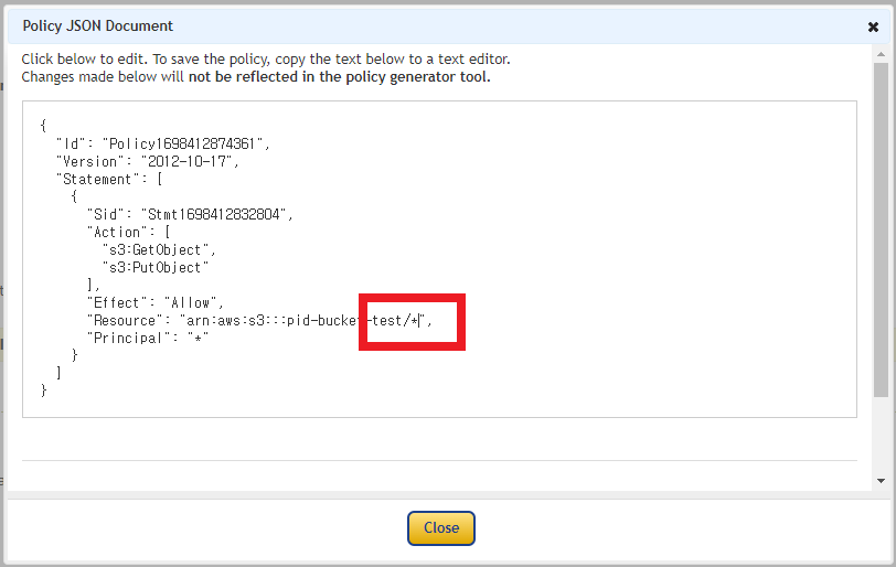 "Resource": "arn:aws:s3:::pid-bucket-test/*",