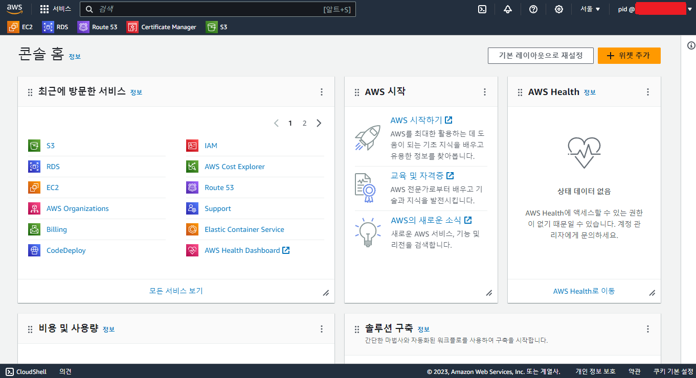 버킷 이름을 pid-bucket 으로 해주고 지역을 서울로 한다.