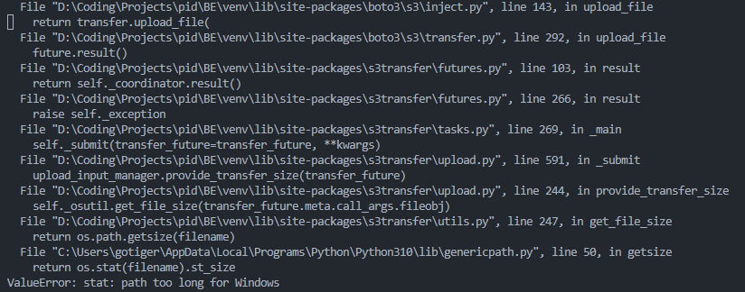ValueError: stat: path too long for Windows
