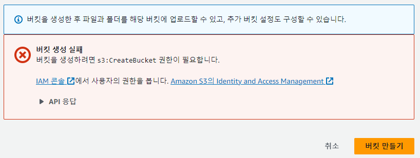 버킷 및 객체가 퍼블릭이 아님