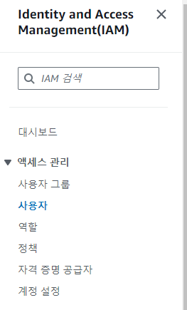 우측 이름 > 보안 자격 증명 > 액세스 관리 > 사용자 그룹에 가준다.