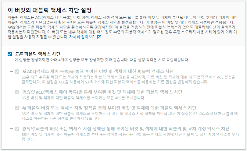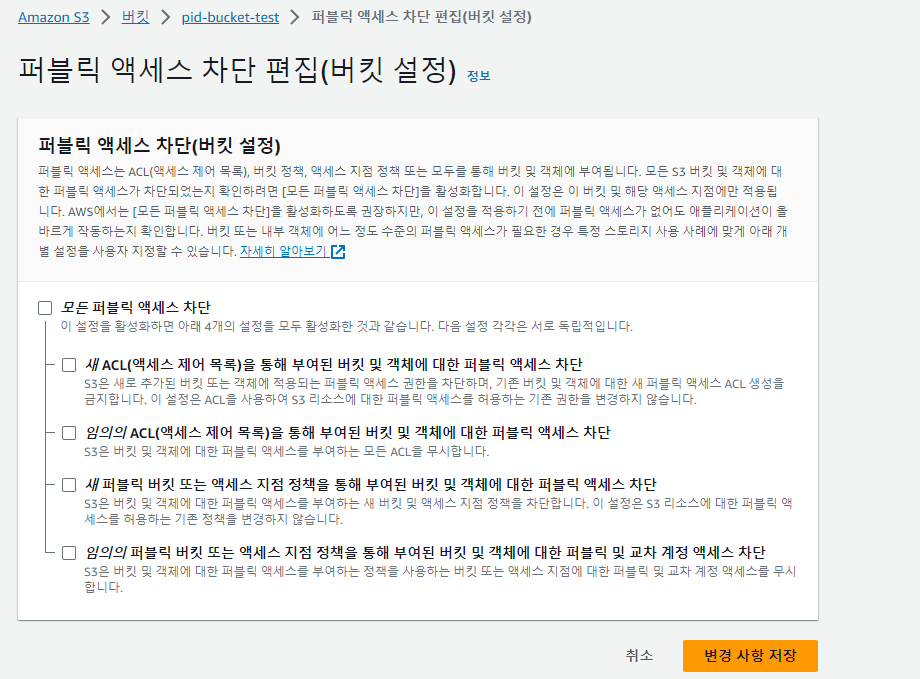 이 버킷의 퍼블릭 액세스 차단 설정