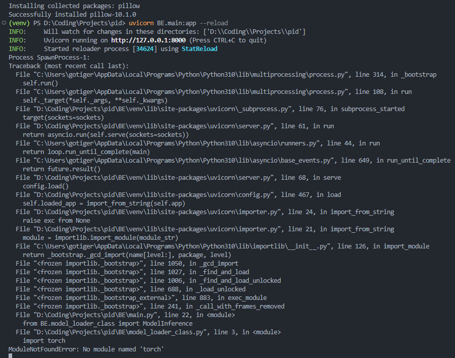 최근에 팀원분의 기능이 병합이 되고 풀받은 상태에서 추가된 라이브러리 설치안함..