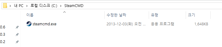 난 C 드라이브에 SteamCMD 폴더 안에 steamcmd.exe을 풀었다