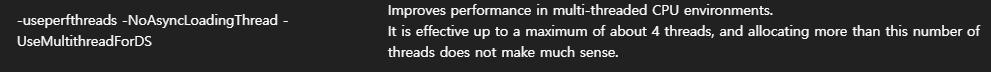 -useperfthreads -NoAsyncLoadingThread -UseMultithreadForDS