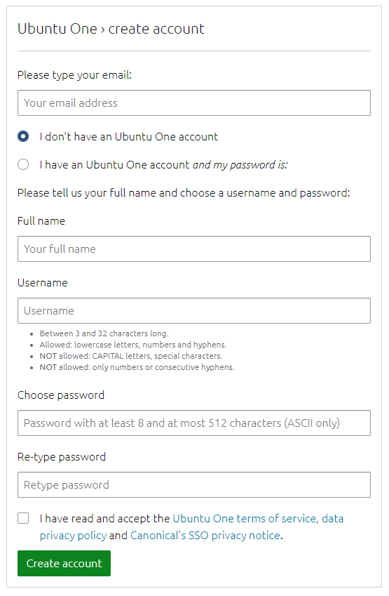 I don’t have an Ubuntu One account 체크 하신 후 계정 생성