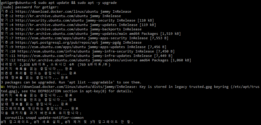 apt upgrade 를 해보면 다음과 같은 에러가 나온다.