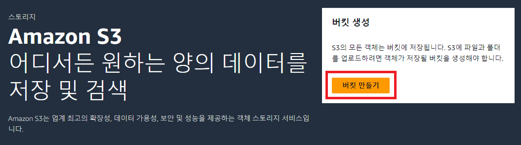 S3에 들어오면 다음과 같은 페이지가 뜬다