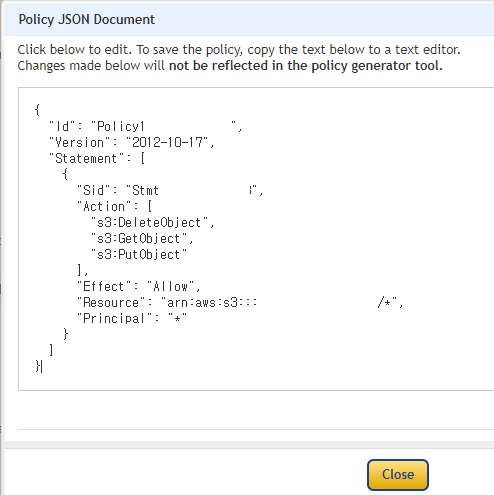 원래 버킷 정책페이지에서 방금 복사한 정책을 붙여넣어준다.