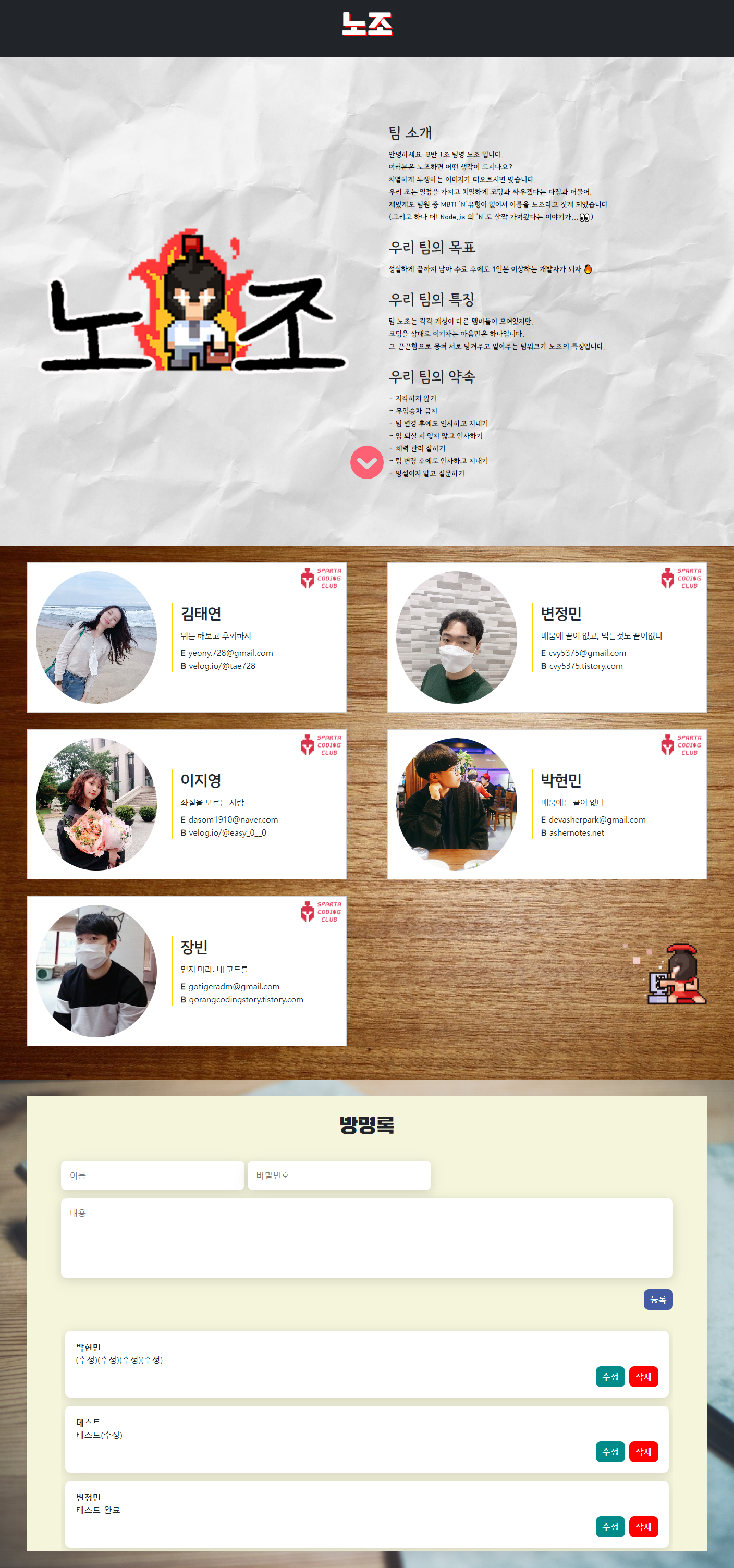 그 후 팀원분이 메인 방명록에 만든 방명록 비밀번호와 삭제기능에서