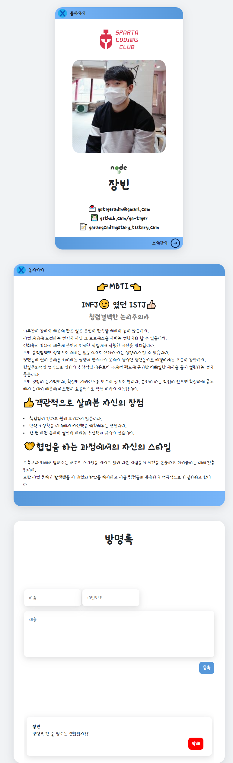 오늘 드디어 메인 및 개인 소개 홈페이지 구성을 마무리 지었다.