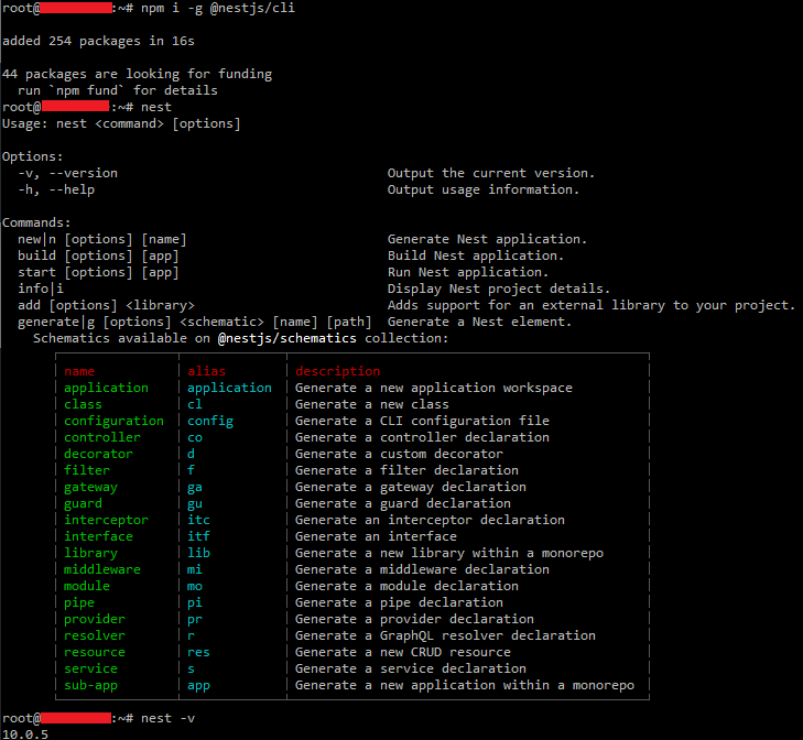 # nest 명령어 보기