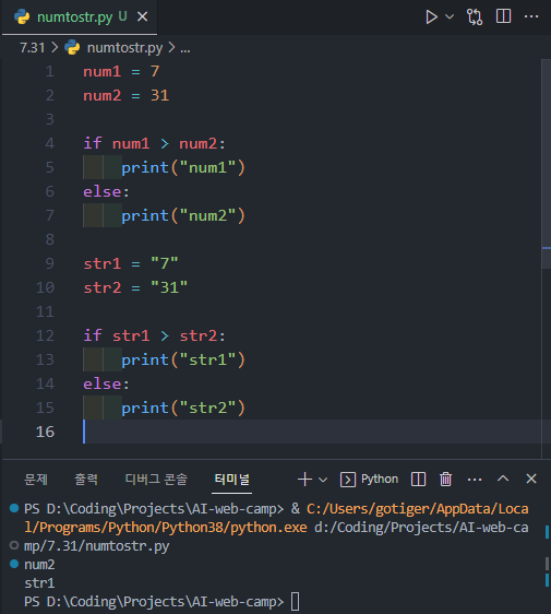 1. 숫자끼리 비교하는 연산과 문자끼리 비교하는 연산 중 왜 문자끼리 비교하는 연산이 상대적으로 불리한지 이유에 대해서 정리해보고 샘플 코드를 구현해서 제출하기