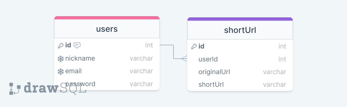 userId 컬럼은 유저가 다수의 단축주소를 가질 수 있기 때문에 일대다 관계를 가진다.