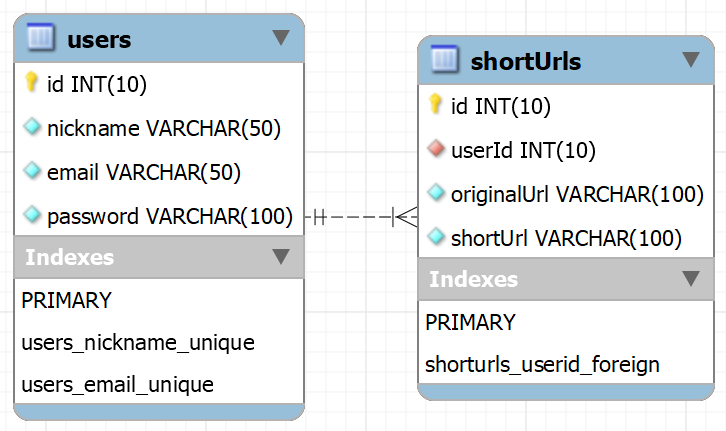 userId 컬럼은 유저가 다수의 단축주소를 가질 수 있기 때문에 일대다 관계를 가진다.