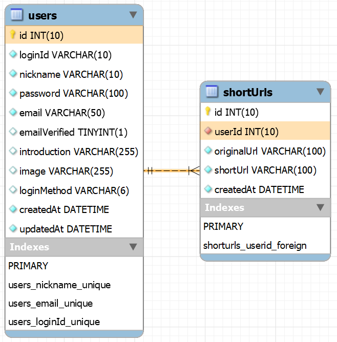 shortUrls 테이블