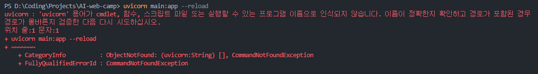 uvicorn main:app --reload 중