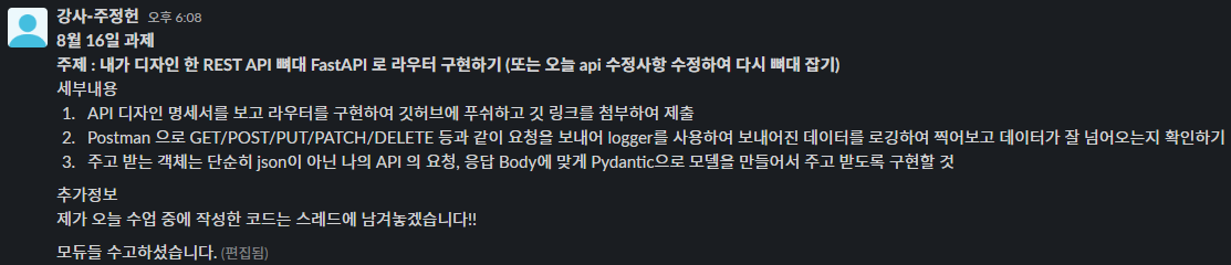 과제: 8.16 FastAPI 로 라우터 구현 · go-tiger/AI-web-camp@5a743a2
