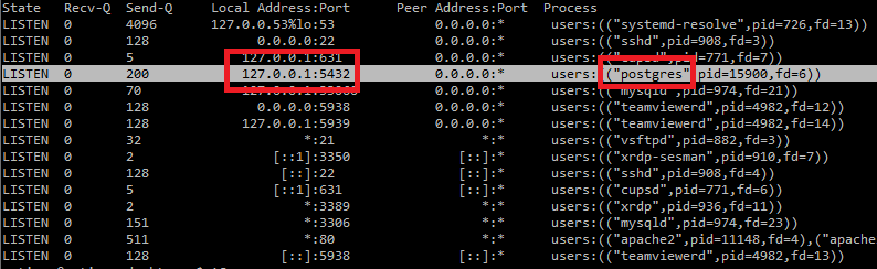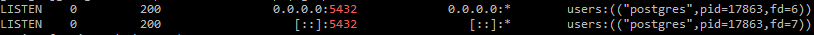 7. LISTEN 확인해서 포트 확인(기본 포트 5432)