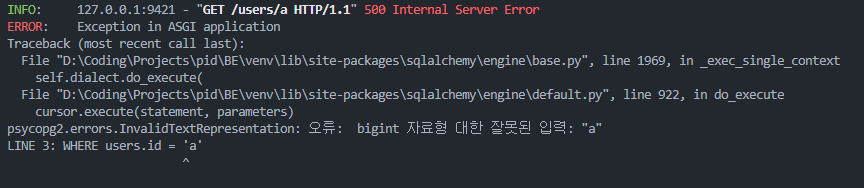 여기서.. 없는 데이터를 조회했을때 문제가 발생한다..