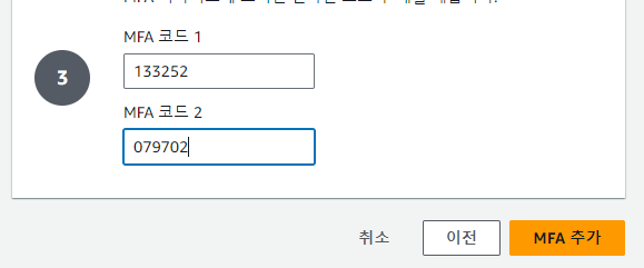 숫자가 바뀌면 MFA 코드 2에 다음 숫자 6자리를 입력해준다.