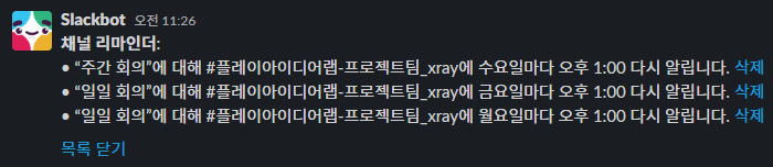 그리고 예전에 설정해놓은 슬랙 리마인드 리스트들을 지웠다.