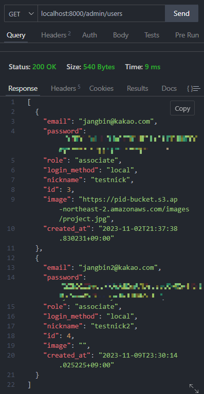 비밀번호 컬럼도 불러와서 필요한 컬럼만 불러오게 해보자